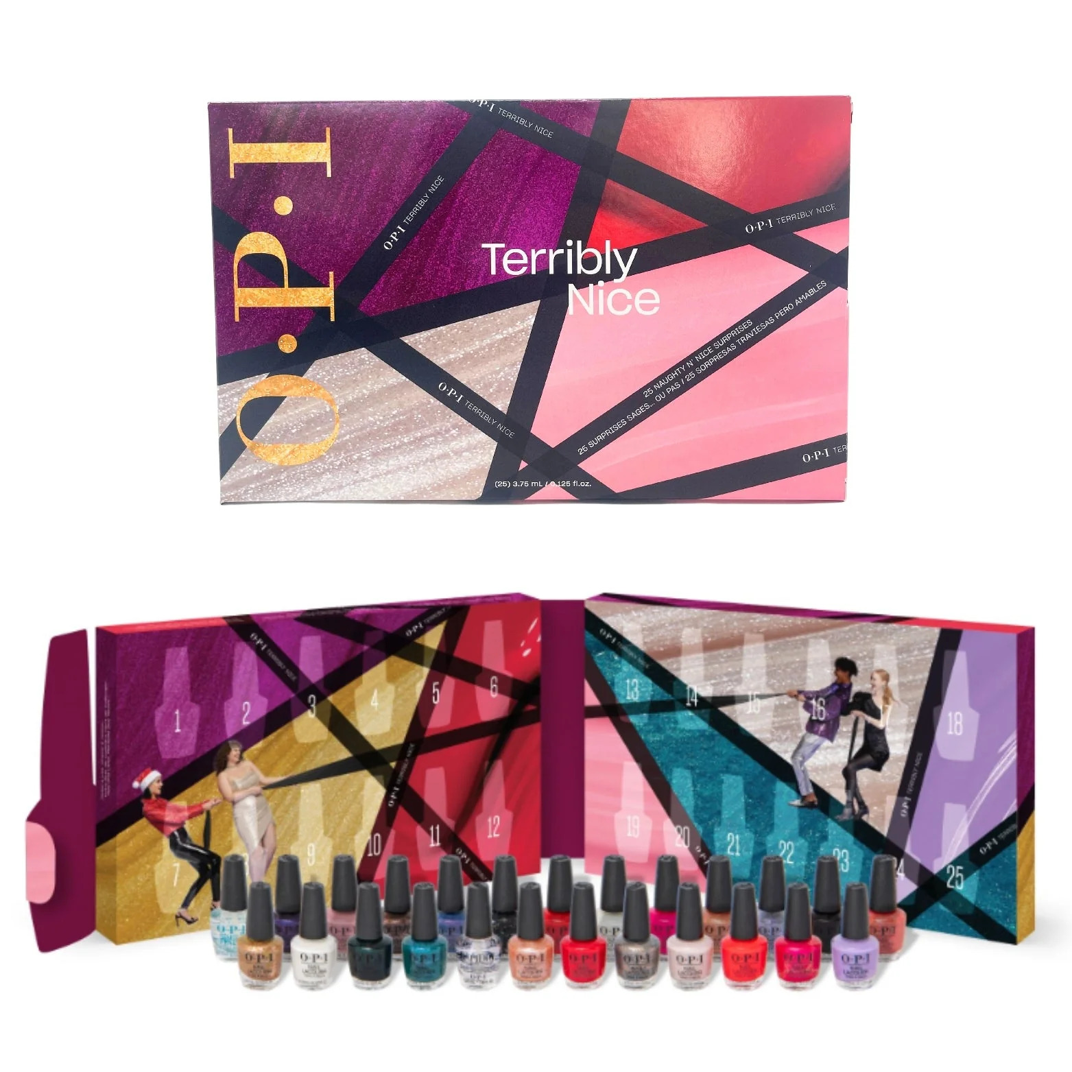 Opi Terribly Nice Advent Calendar is a special calendar that is designed to help count down the days of Advent, which is the period leading up to Christmas. These surprises can range from chocolates or candy to small toys, trinkets, or other surprises, and are meant to add an element of excitement and anticipation to the holiday season. Opi Terribly Nice Advent Calendar come in a variety of designs, from traditional religious themes to more contemporary or whimsical styles, and are a fun and festive way to celebrate the holiday season.